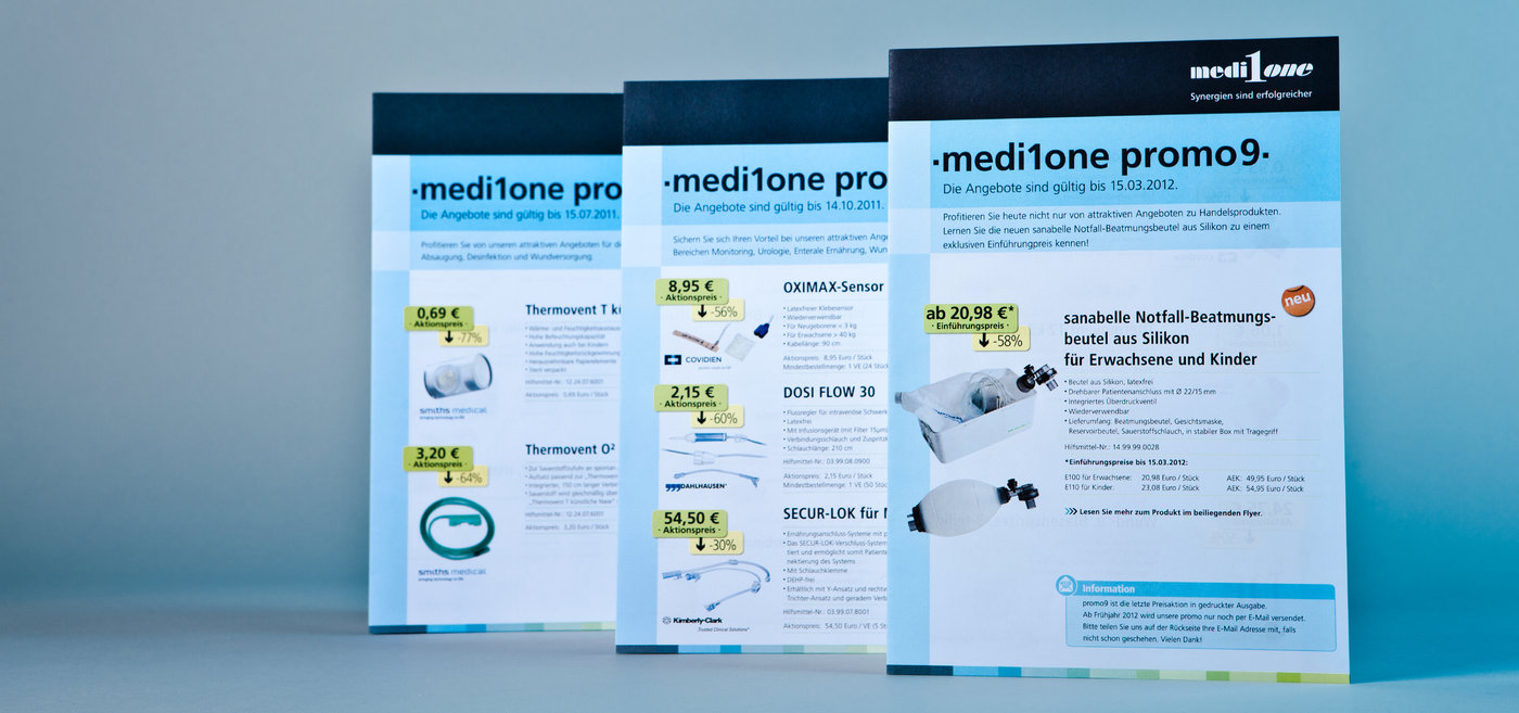 Corporate Design, Verpackungs- und Marketingmitteldesign der Eigenmarke des Medizinartikelgroßhandel medi1one in Waiblingen
