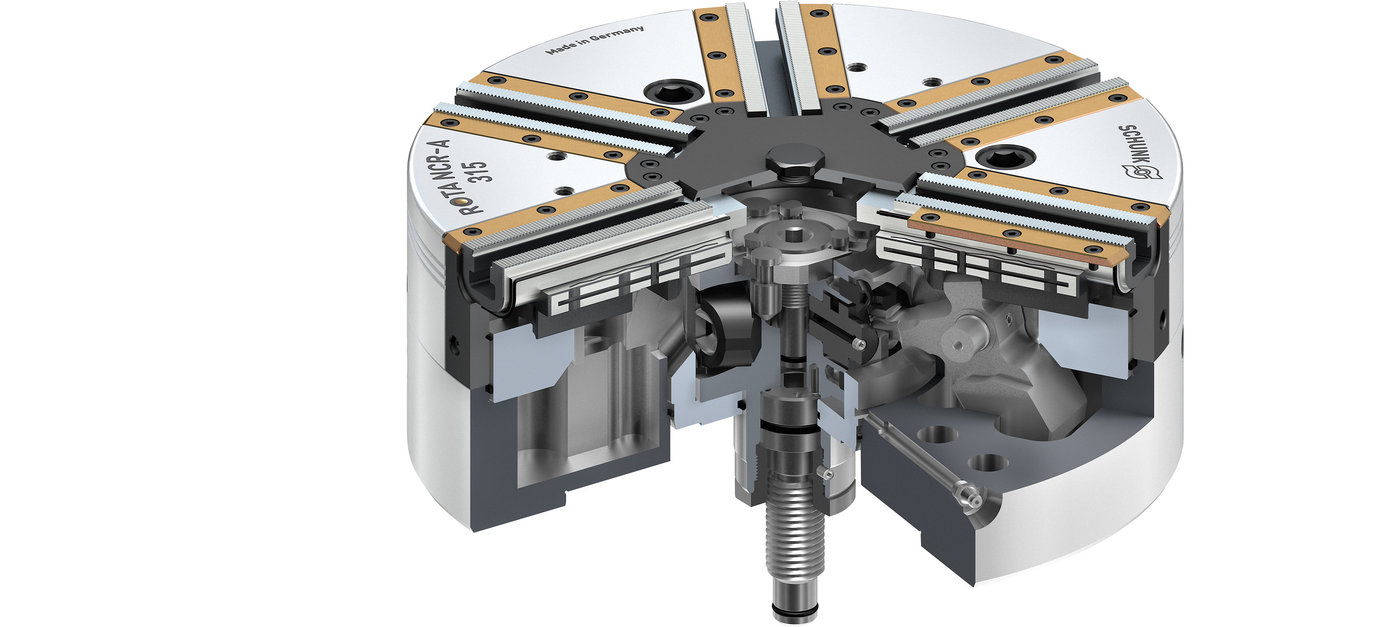 Umsetzen des Produktsortiments als einheitliche 3d Visualisierung. Für den Katalog der Firma Schunk (Spanntechnik und Greifersysteme) entstanden bei uns Produkte als fotorealistische Rendering-Darstellung. Eine einheitliche Darstellung der gesamten Produktpalette sollte konzipiert und umgesetzt werden. Das identisch verwendete Material, die identische Ausleuchtung und die identische Renderperspektive verhalf den Produkten zu einem einheitlichen Auftreten. Zudem konnten Kosten gespart werden, was Fotografie und Retusche anging. Ein weiterer Vorteil war, dass bereits Produkte mit in den Katalog aufgenommen werden konnten, die es bis zu Drucktermin nur als Prototyp gab.